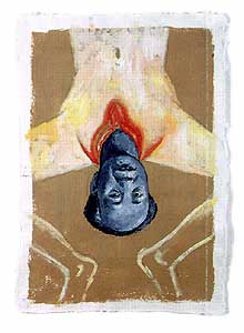 Acrylic and clay on rice-paper, 100 x 70 cm.