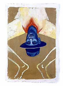 Acrylic and clay on rice-paper, 100 x 70 cm.