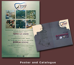 inheritance. How do we promote them to Thai and foreign tourists? The Sixth Artists Group, including the art lecturers from higher education institutes, the scholars and the independent artists, have six times joined together to create the art exhibition. This current Seventh Art Exhibition will be taken place for the special occasion in the 220 Anniversary of Bangkok beyond the title "the Inspiration from Bangkok 220 Ranakosin Era" (Inspiration from Bangkok 2002). Each artist membership is going to search for "precious artistic things" which are scattered in Bangkok. Then, they will provide them for various art collection and propagate in both Thai and English documents. Tourists can take more time in Bangkok to investigate Thai cultural arts. This will bring the advantages to tourism industry and arouse the economy, as well. The Sixth Artists Group s artistic intention is to perform the creative works with all their creative art abilities about each local cultural arts in Bangkok irJ the great occasion of 220 Ratanakosin Era Celebration. |