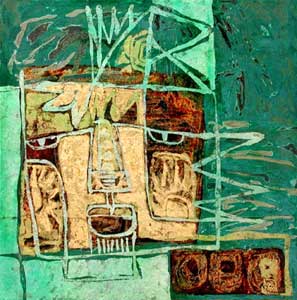 Technique: Gold leaf and lacquer on board, 40 x 40 cm.