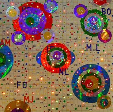 Theory 75-B, 2003, Stickers, plastic sheets and light box, 100 x 100 cm.