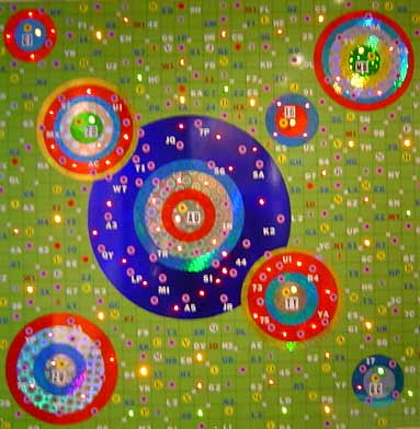 Theory 82-A, 2003, Stickers, plastic sheets and light box, 100 x 100 cm.