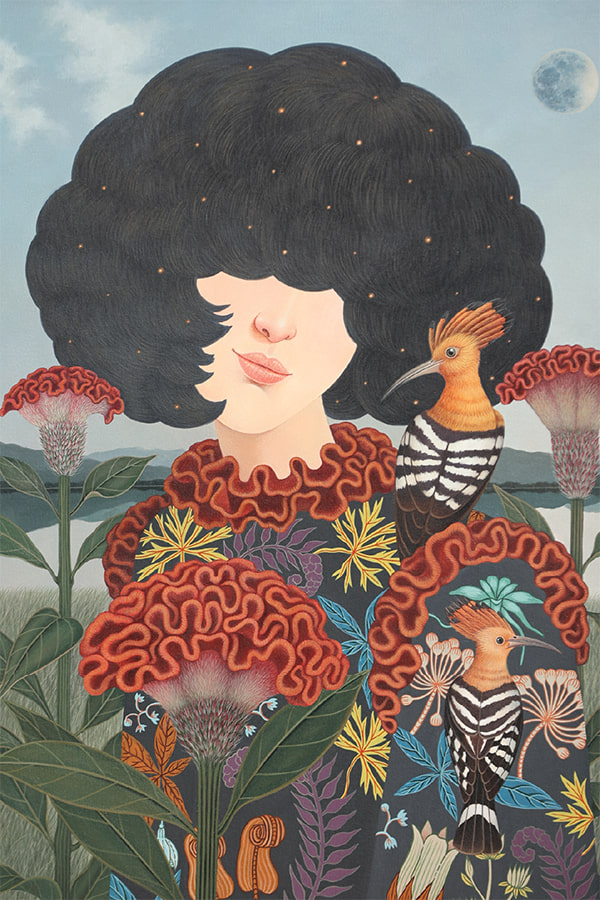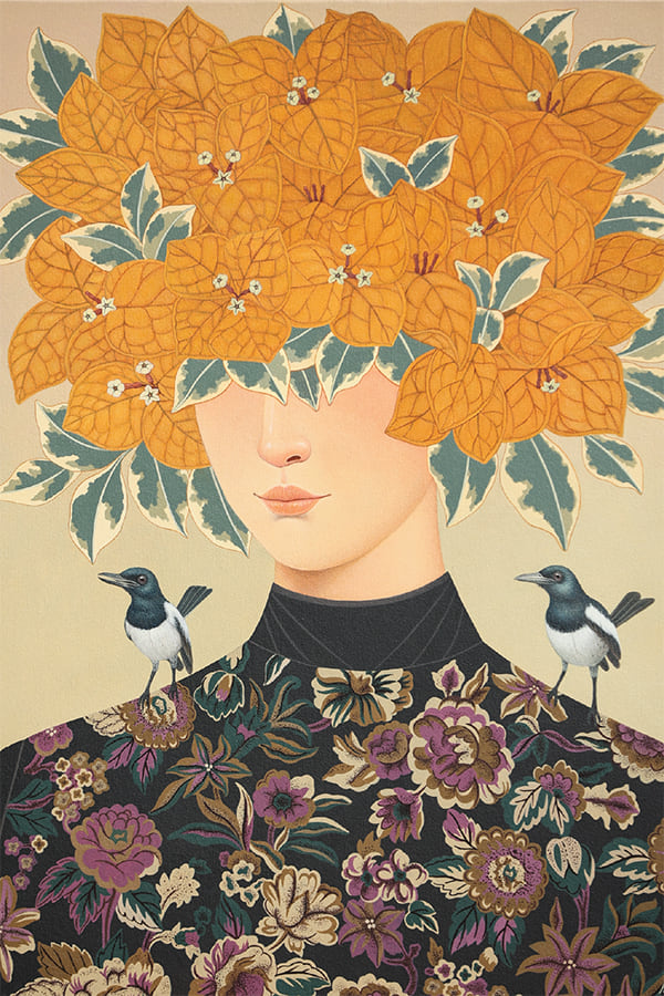 Puttalak Dadsada (b. 1986, Chiang Rai) is an independent artist and the founder of Dadsada Studio. While working at the university, she had the opportunity to create botanical art in Somdet Phra Srinakarindra Park. This experience allowed her to observe nature deeply. By studying insects, animals, and the natural cycles of life and decay, she developed a "surreal" style that blends plants, animals, and humans into a story of nature’s richness.