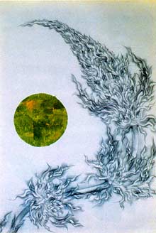Chacoal and gold leaf on paper