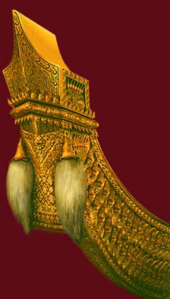 | The Anekchartphuchong Royal Barge (No.3) The existing barge was built in the reign of King Chulalongkorn, Rama V of the Bangkok Period. It is carved and gilded in the pattern of small serpents. The hull is painted pink on the outside, and red on the inside. It is categorized as an informal royal barge. It measures 45.50 metres in length, 3.15 metres in width, 1.11 metres in depth, with a draft of 0.46 metres, and a 3.50 metres power, manned by 61 rowers and two steersmen, with two helmsmen, one flag-bearer, one signalman and one boat-rowing song singer. |