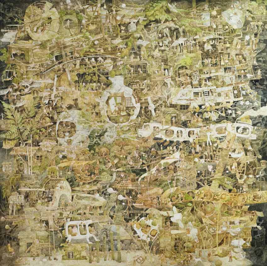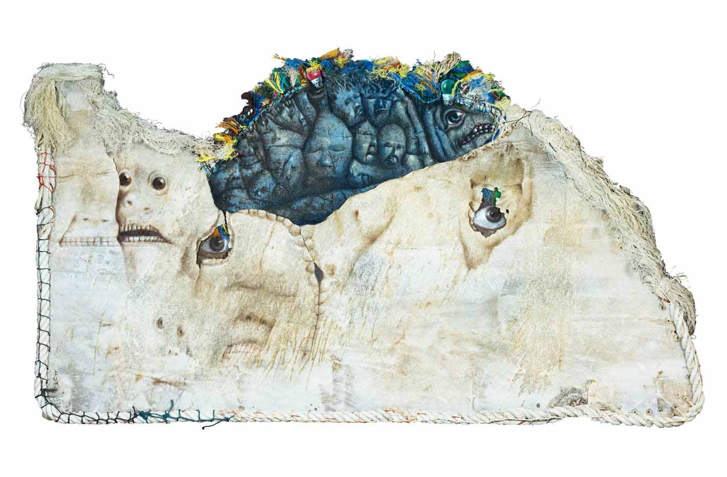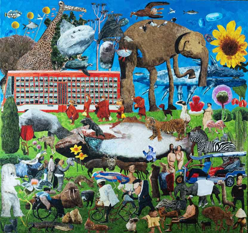 Medium: สีอะคริลิกและตัดปะบนผ้าใบ | Acrylic and collage on canvas