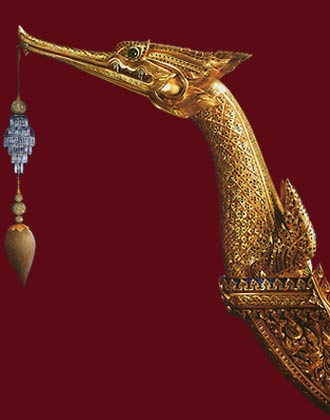 | The Suphannahongse Barge (No.1) The existing Suphannahongse Royal Barge was remade in the reign of King Vajiravudh, Rama Vl, built by a naval architect, Korn Hongsakula. The barge has the figure of a golden swan carved and decorated on the bow. It is entirely gilded and decorated with mirror. The bottom of the barge is painted black on the outside, and red on the inside. It measures 44.90 metres in length, 317 metres in width, 0.90 metres in depth, with a draft of 0.91 metres, and a 3.50 metres power, manned by 50 rowers and two steersmen, with one flag-bearer, one signalman, and one boat-rowing song singer. |
